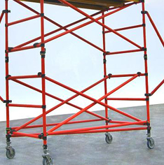 移動門式腳手架在主要配件有主框,橫框,交叉斜撐,腳手板,可調(diào)底座等組成。移動腳手架是一種建筑上使用過的經(jīng)濟(jì)設(shè)施,廣泛應(yīng)用于各種大小型的建筑工地上,起到了很大的輔助作用。